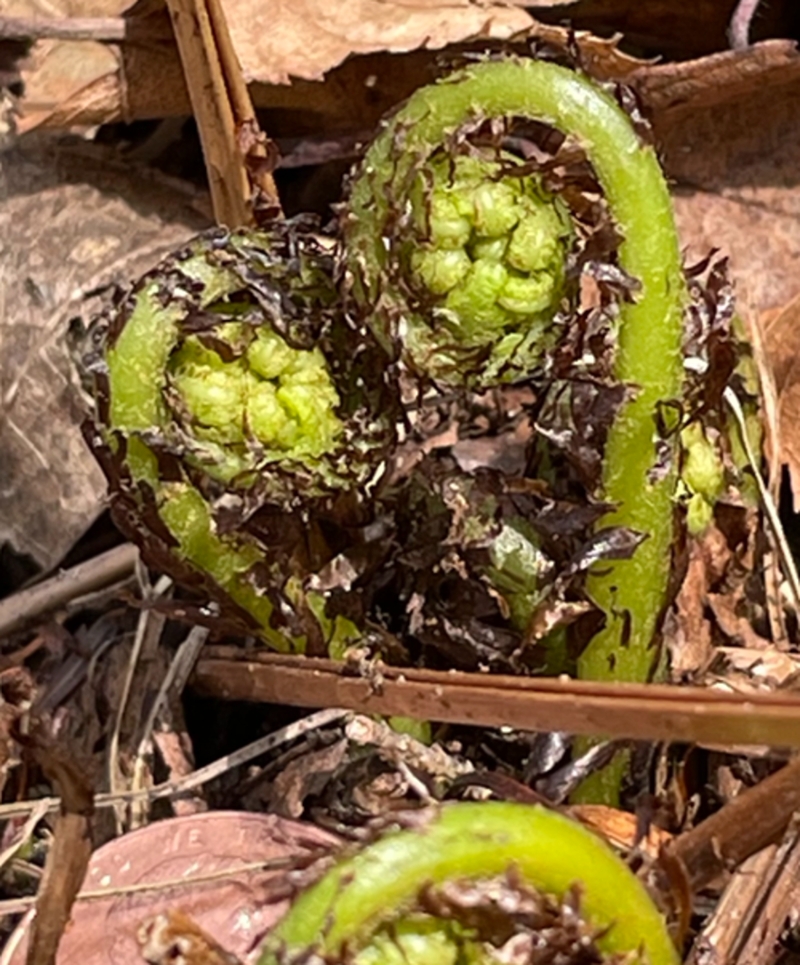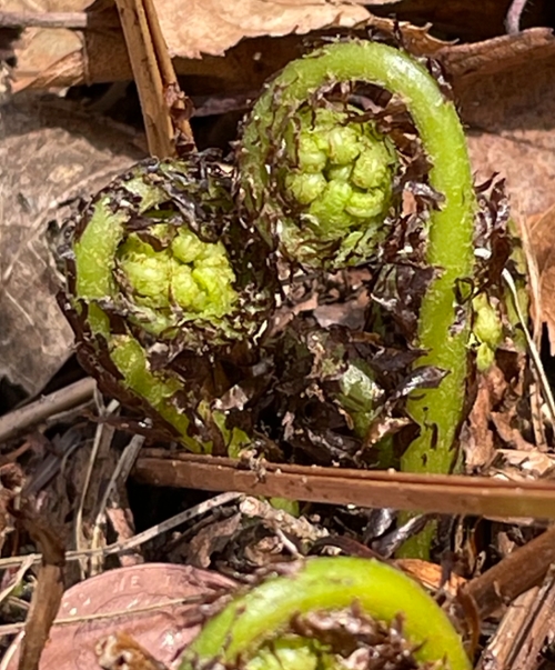 Wishing you all a Happy Valentine's Day with these Lady Fern (Athyrium angustum) fiddleheads! This photo was taken last April 18th. Hard to believe we are only two months away from these fiddleheads being out again! Right now there is too much snow to see even most of the winter ferns! But this photo makes me think of Spring.